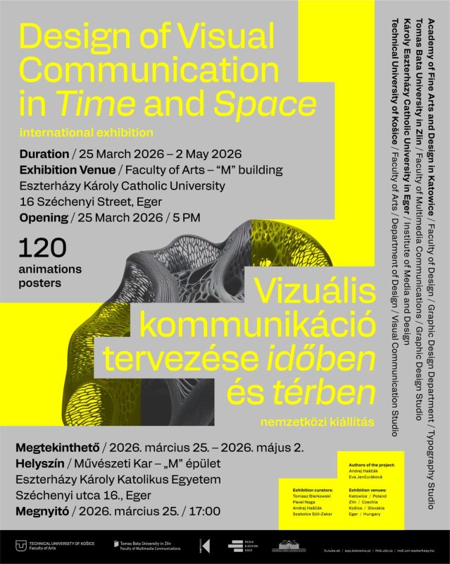 Katowice, Zlin és Kassa után Egerben is sikeresen megnyílt március 25-én a Vizuális kommunikáció tervezése térben és időben c. nemzetközi vándor kiállítás, amely az Eszterházy Károly Katolikus Egyetem Média és Design Intézetében tekinthető meg május 2-ig.